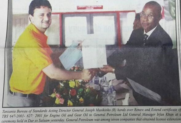 GP Tanzania gets featured in national newspaper of Tanzania, The Guardian, on getting the Engine and Gear oil Certificate renewed and extended.